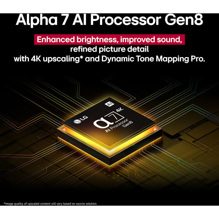 - ALPHA 7 AI PROCESSOR GEN8: Enhanced brightness, improved sound, refined picture detail with 4K upscaling and Dynamic Tone Mapping. It all comes together for a thrilling watching experience powered by the Alpha 7 AI Processor Gen8.