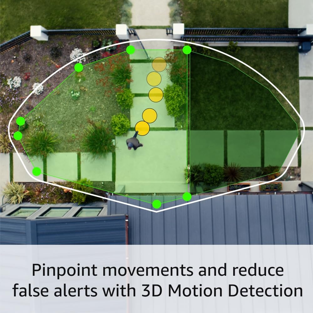 - 3D Motion Detection — Configure Bird's Eye Zones up to 30' away on an overhead map of your property to pinpoint movement only where it matters.