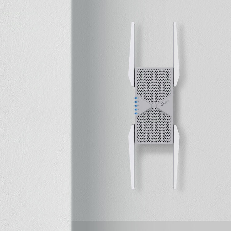 Eliminate dead spots from your home by plugging the TP-Link RE653BE BE10000 Wireless Tri-Band Wi-Fi 7 Range Extender into an available wall outlet. Compatible with most routers, this Wi-Fi 7 (802.11be) compatible extender supports up to 10.2 Gb/s transfers over the 2.4, 5, and 6 GHz bands with compatible devices - delivering smooth 8K video streaming and low latency gaming experiences.